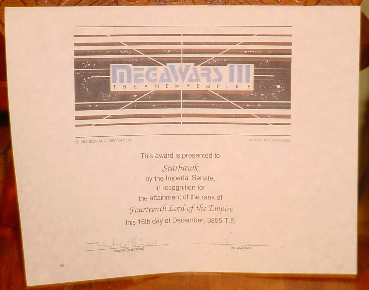 This is the award for being Emperor of the Final Mega Wars 3 war.